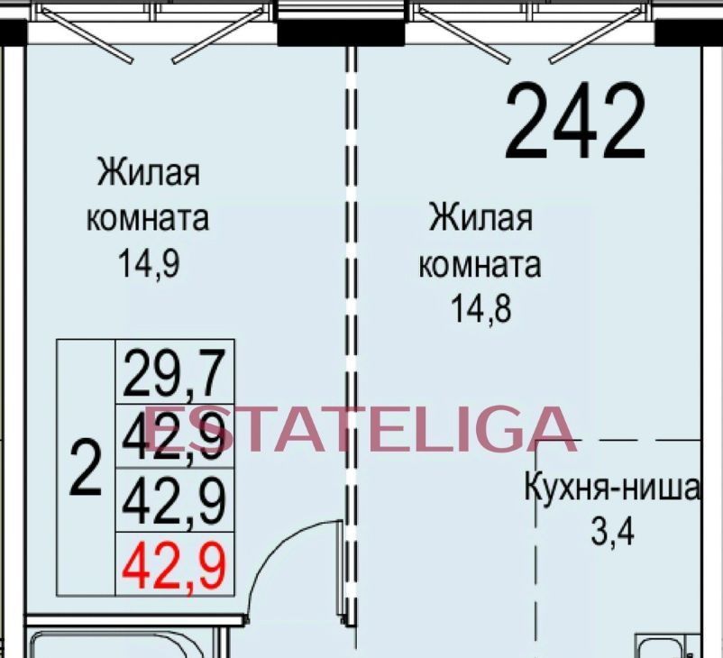 Id 59218. Сдаётся в аренду просторная и уютная 2-к квартира с евро ремонтом 42 м