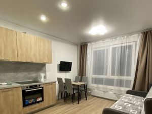 Современный свежий интерьер, кухня оборудована (варочная панель, духовой шкаф, вытяжка, холодильник), просторный санузел в плитке. Чистый подъезд, приличные соседи.