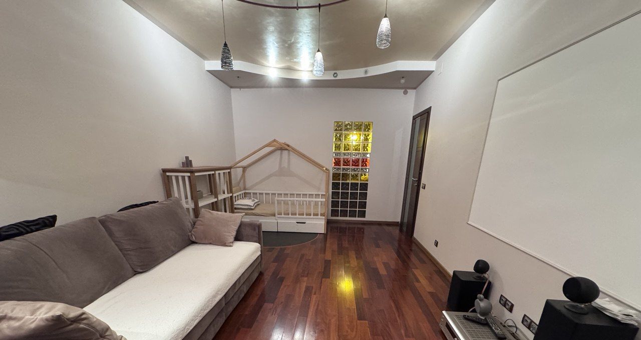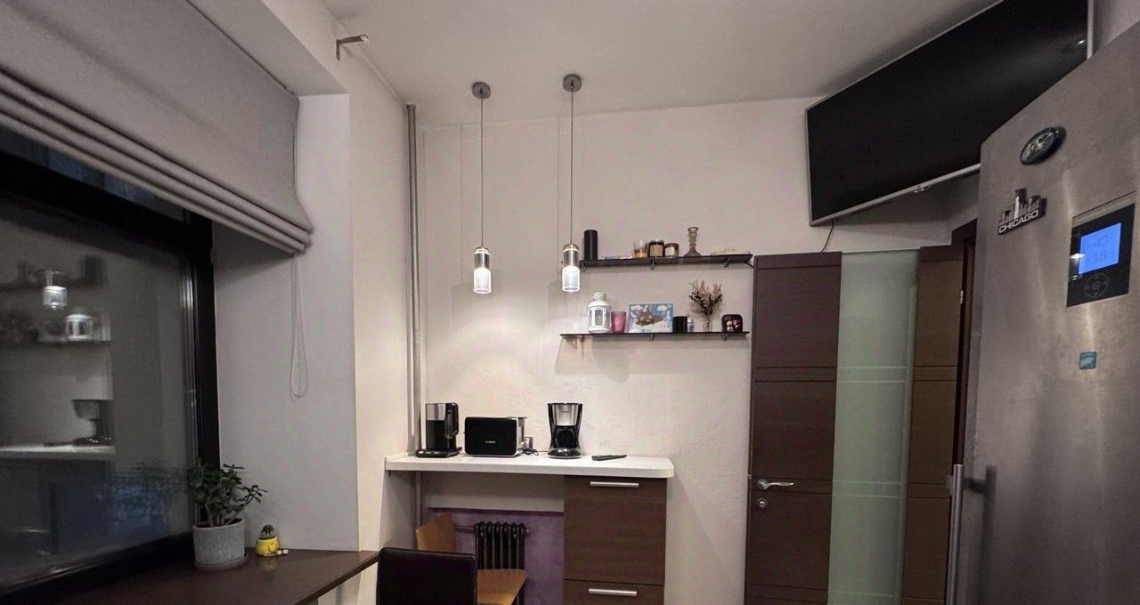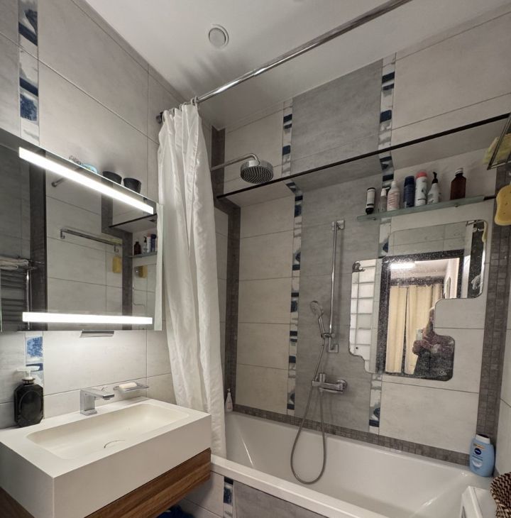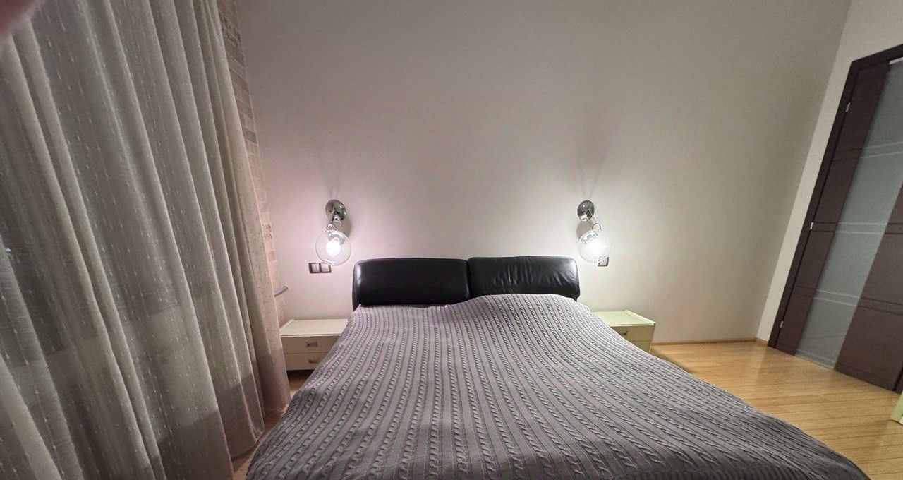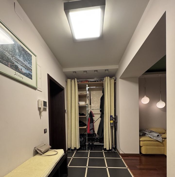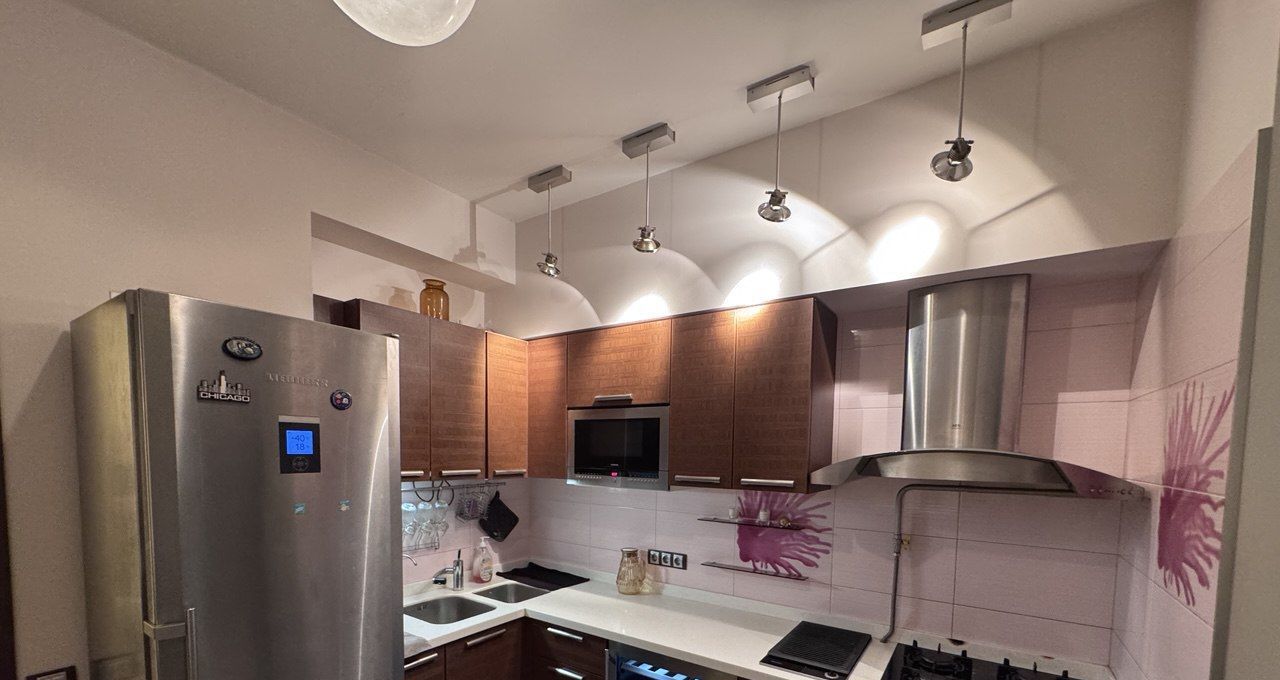 Просторная квартира - комнаты 25 и 15 кв.м., кухня - 10 кв.м. Полностью меблирована и оснащена всей необходимой техникой - холодильник, посудомоечная машина, стиральная машина, микроволновка, кондиционер, проектор. В квартире много интерьерного освещения.