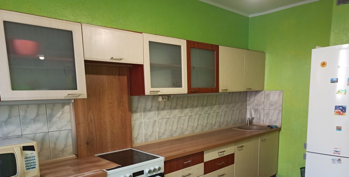 В квартире сделан современный евроремонт, благодаря чему она выглядит стильно и уютно. Просторная кухня площадью 12 кв. м оборудована всей необходимой мебелью и техникой, включая холодильник и телевизор. В комнатах также есть мебель, что позволяет сразу заселиться и жить с комфортом. Санузел раздельный, оборудован ванной. Высота потолков 2.64 метра, что создаёт ощущение простора. Из квартиры есть выход на балкон.