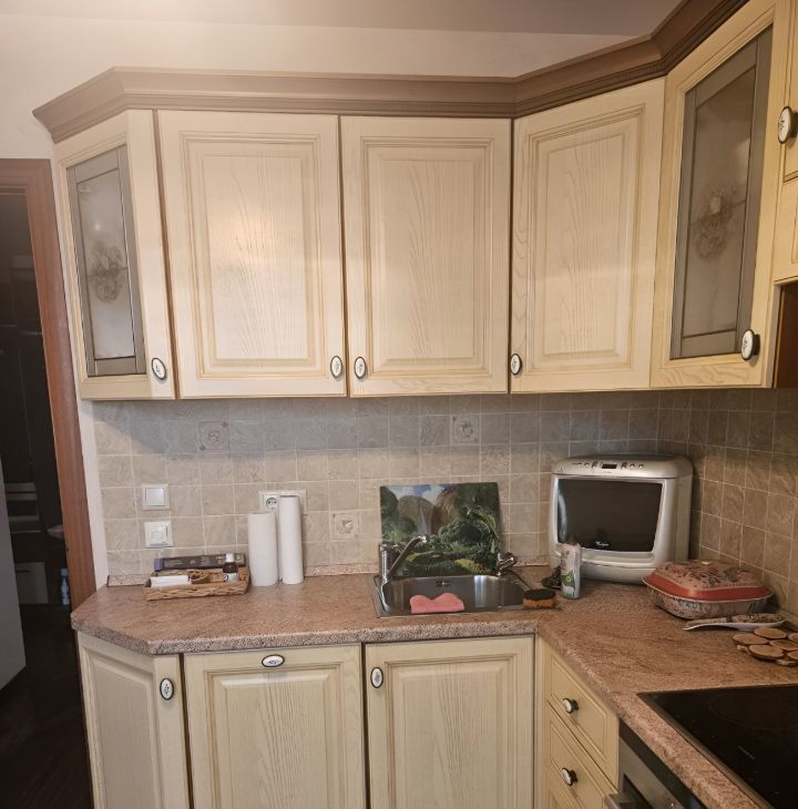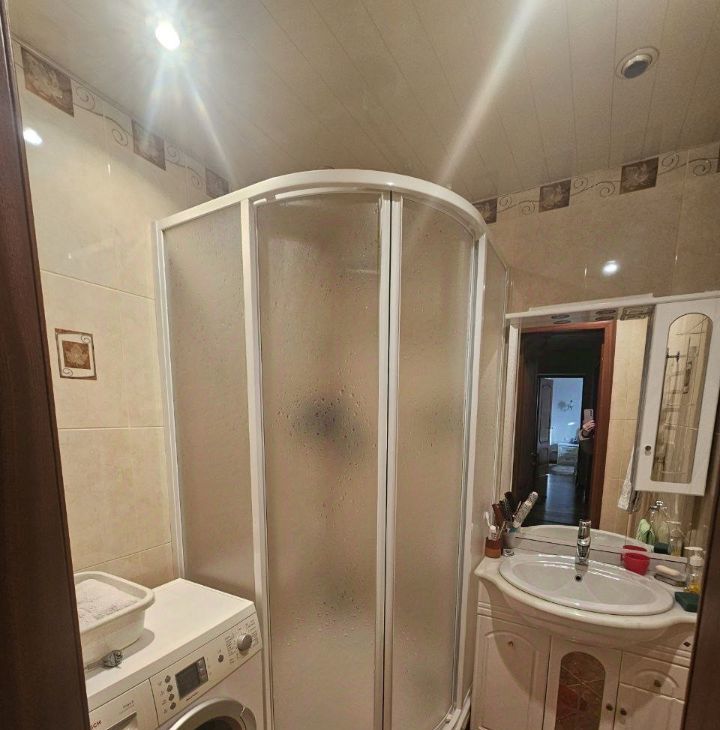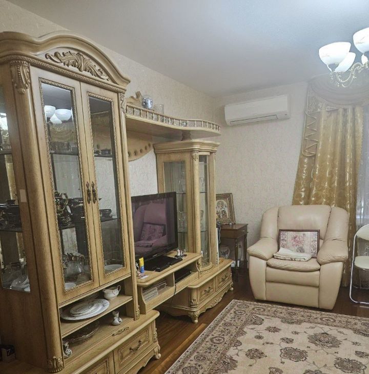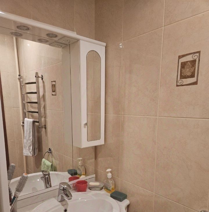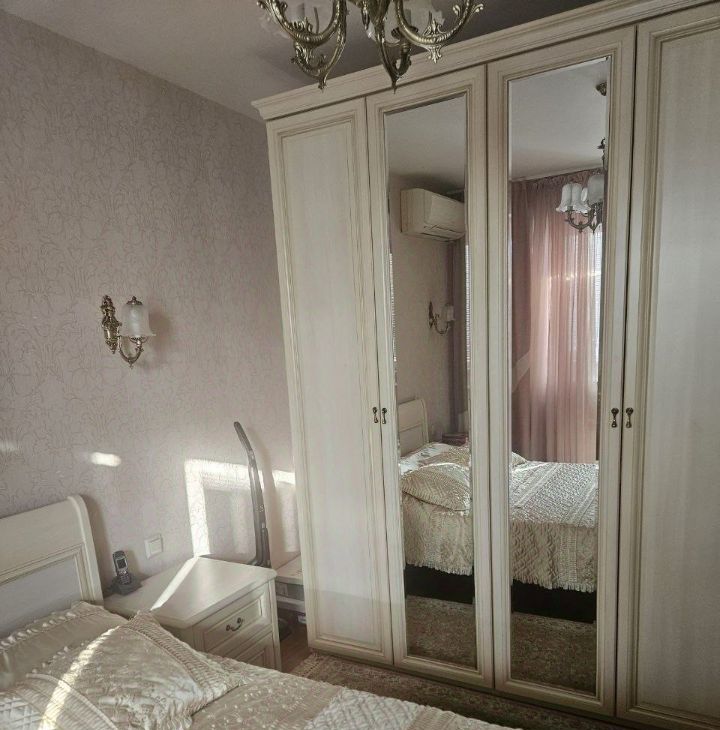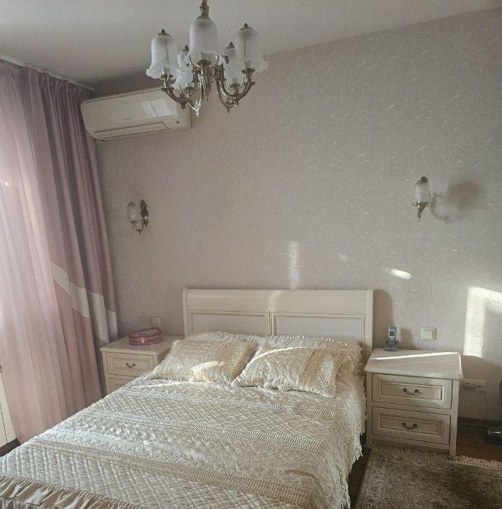 Квартира оборудована всем необходимым для комфортного проживания. Ремонт делался для себя, кожанный диван и деревянная мебель. В каждой комнате есть кондиционер. Кухня просторная, полы с подогревом, оснащена холодильником и посудомоечной машиной, есть СВЧ и чайник. В гостиной вас ждет телевизор. Ванная комната с душевой кабиной.