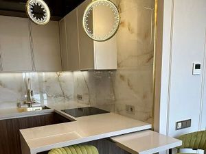 Просторный двухкомнатный апартамент на 8ом этаже. Полностью оборудована кухня и ванная комната.