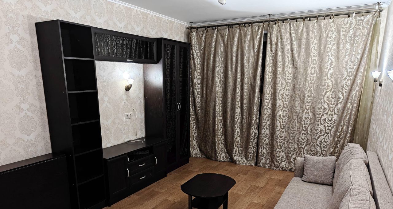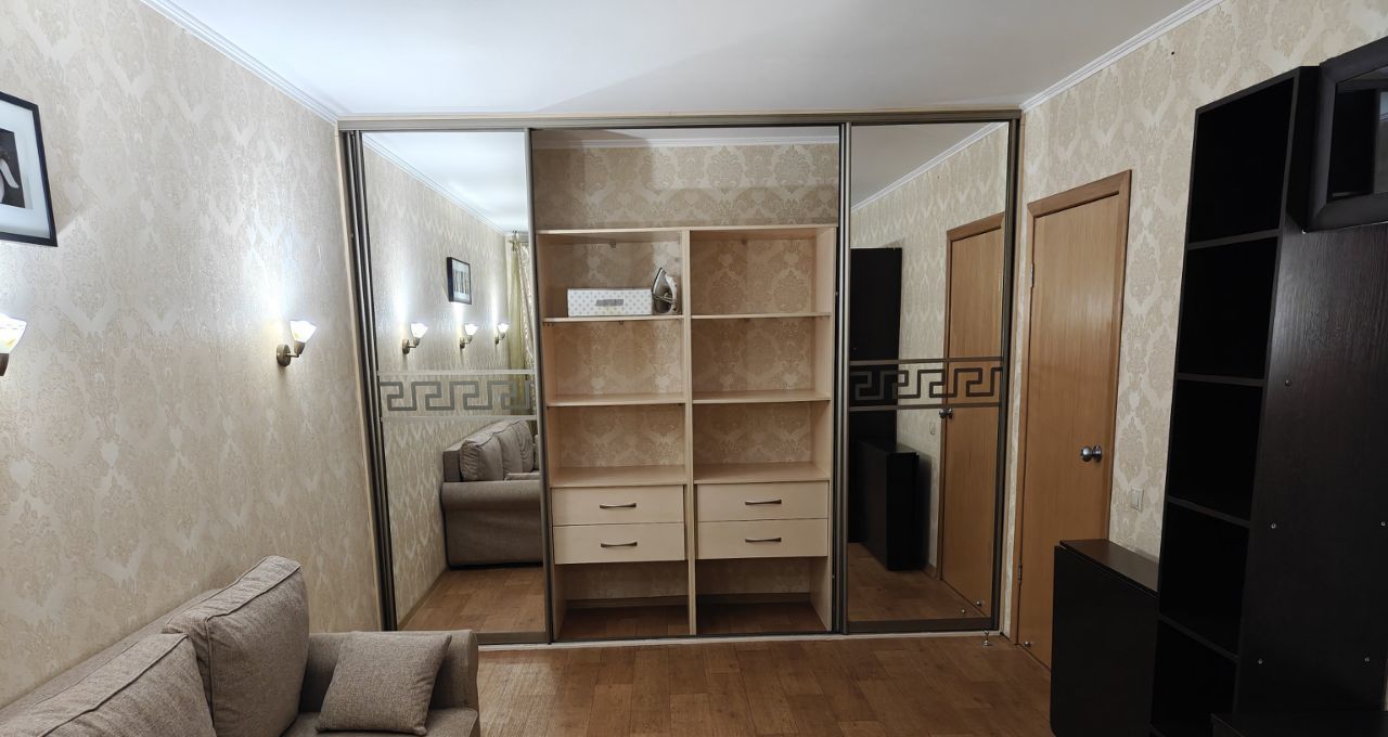 В квартире выполнен евро ремонт, стены украшены стильными обоями. В гостиной установлен вместительный шкаф-купе с зеркальными дверцами, а также удобный диван и телевизор (обговаривается).