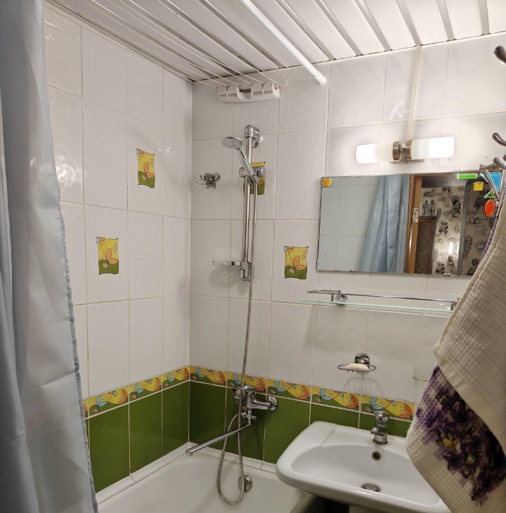 Санузел раздельный, оснащен ванной и раковиной. В прихожей антресоль, доступ к которой есть и из кухни.