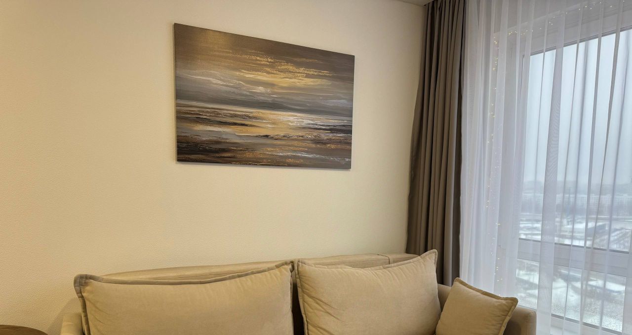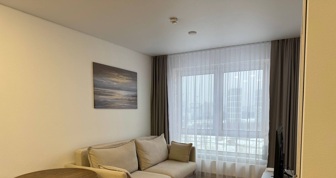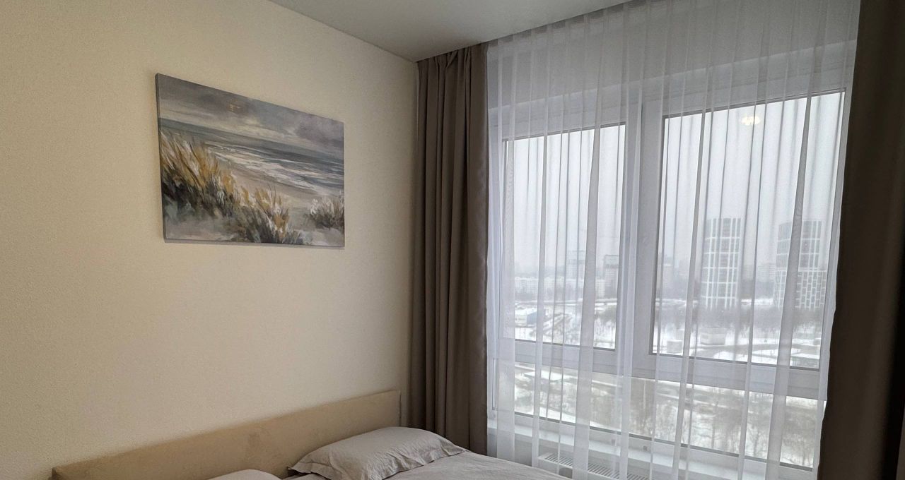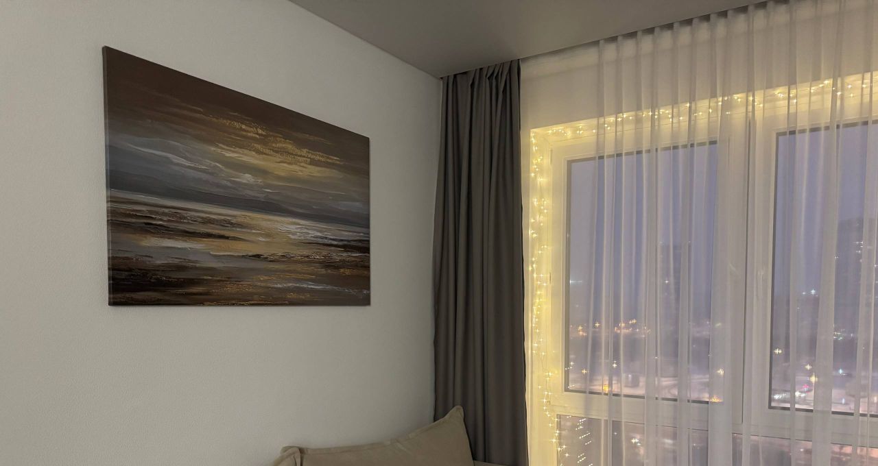 Сдаётся светлая, стильная евро-двушка 33 м² на 16 этаже с красивым видом. В ясную погоду видно Москва-Сити. Вечером особенно атмосферно.