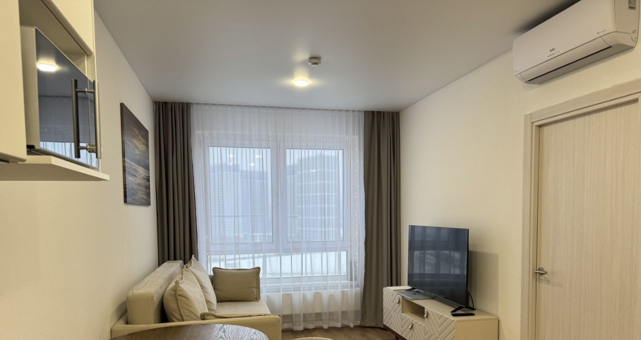 Сдаётся светлая, стильная евро-двушка 33 м² на 16 этаже с красивым видом. В ясную погоду видно Москва-Сити. Вечером особенно атмосферно.