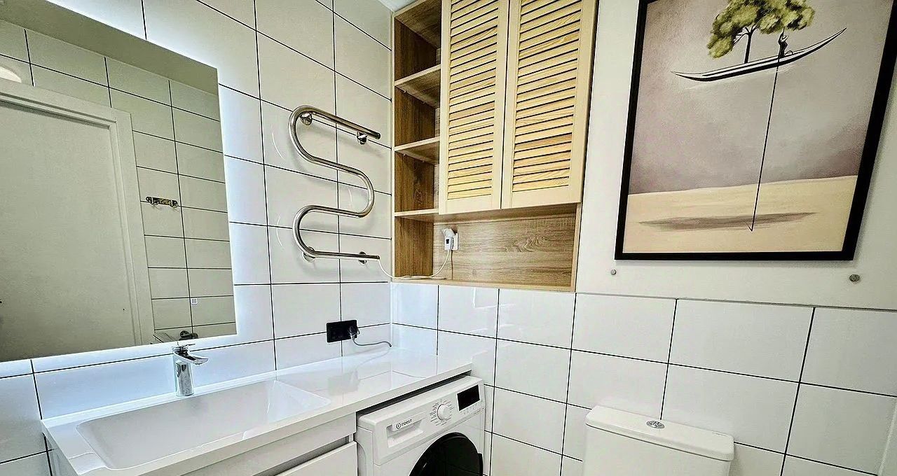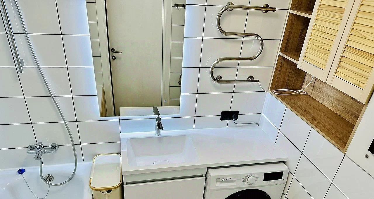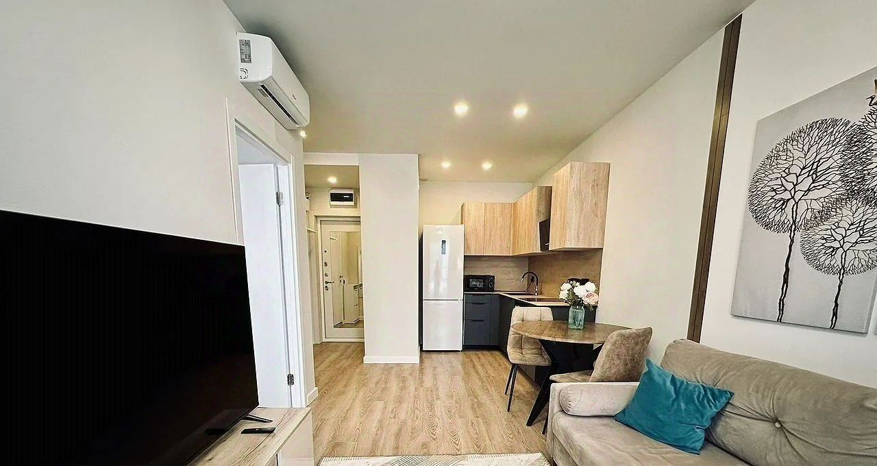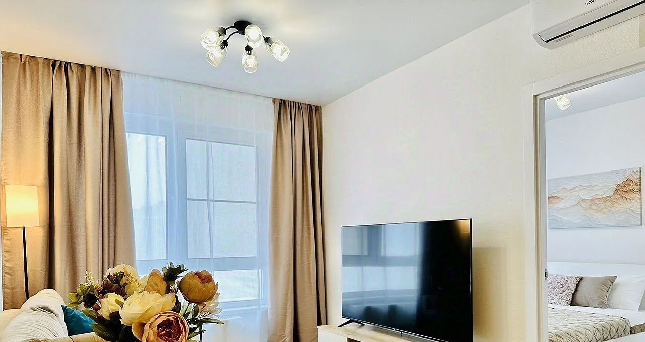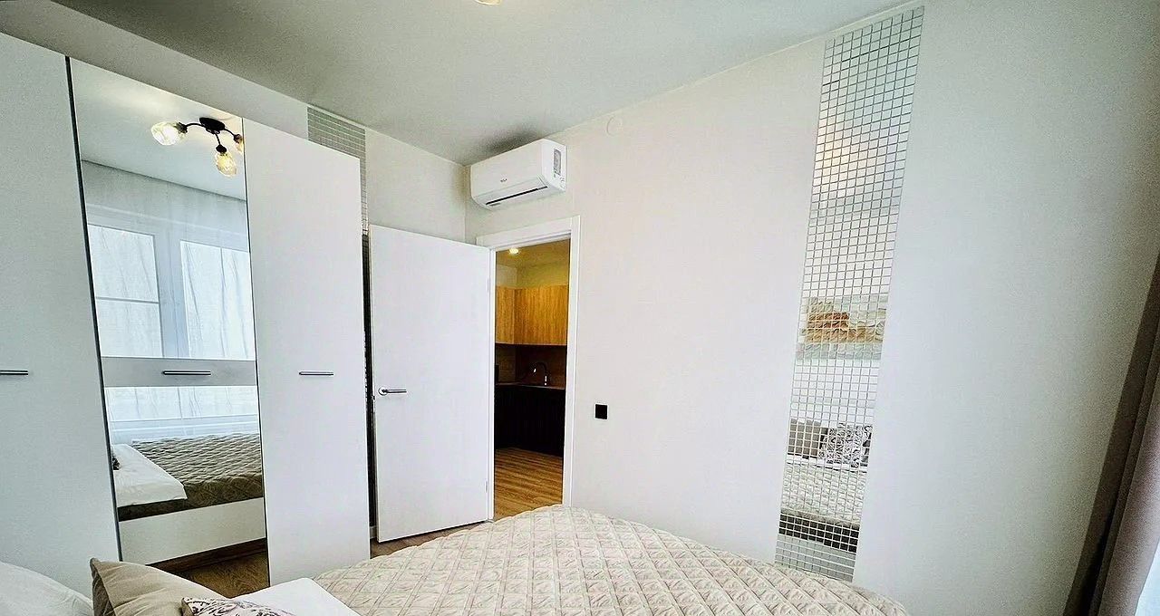Квартира обставлена современной мебелью и укомплектована всей необходимой техникой: кондиционер, холодильник, посудомоечная и стиральная машина, телевизор. Уютная кухня с обеденной зоной и ванная комната с ванной обеспечат комфортное проживание. Окна выходят во двор, поэтому в квартире всегда тихо и спокойно.