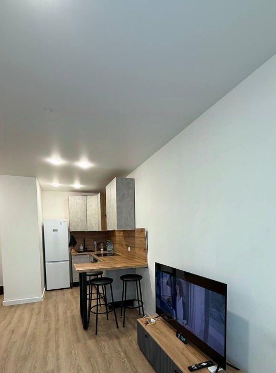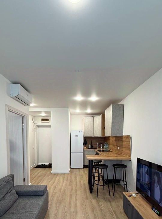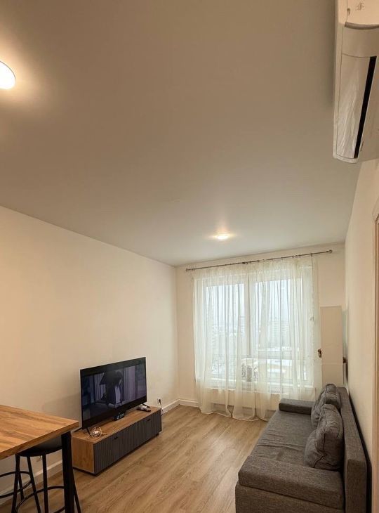 Квартира с евроремонтом, полностью готова для комфортного проживания. В наличии вся необходимая мебель: на кухне и в комнате. Из техники — кондиционер, холодильник, телевизор и стиральная машина. Совмещенный санузел с ванной. В квартире проведены интернет и телефон, поэтому можно без проблем оставаться на связи.