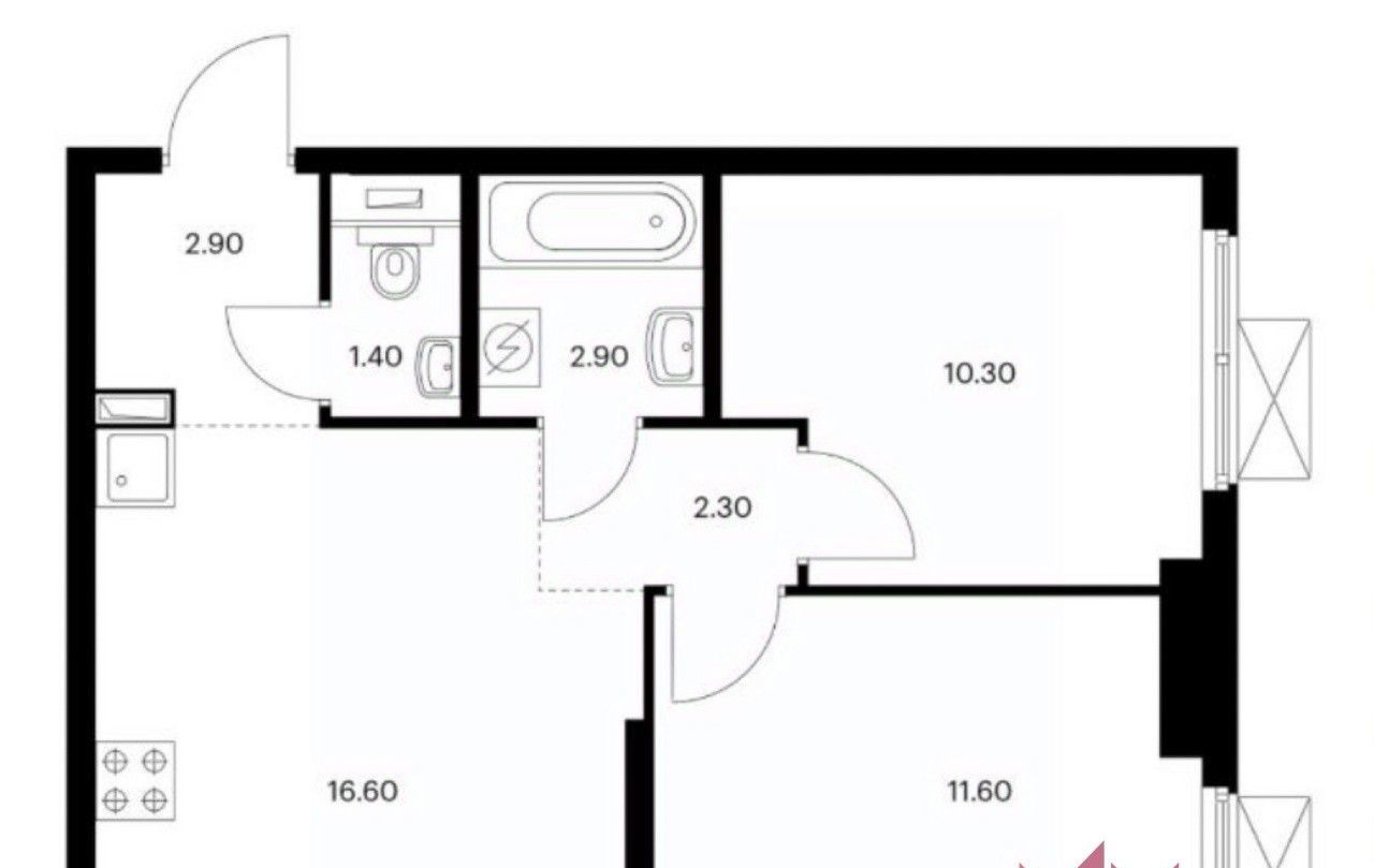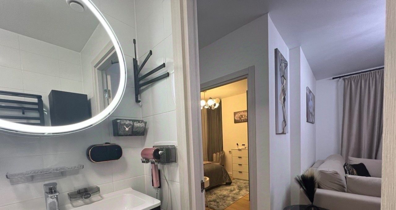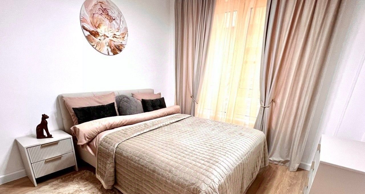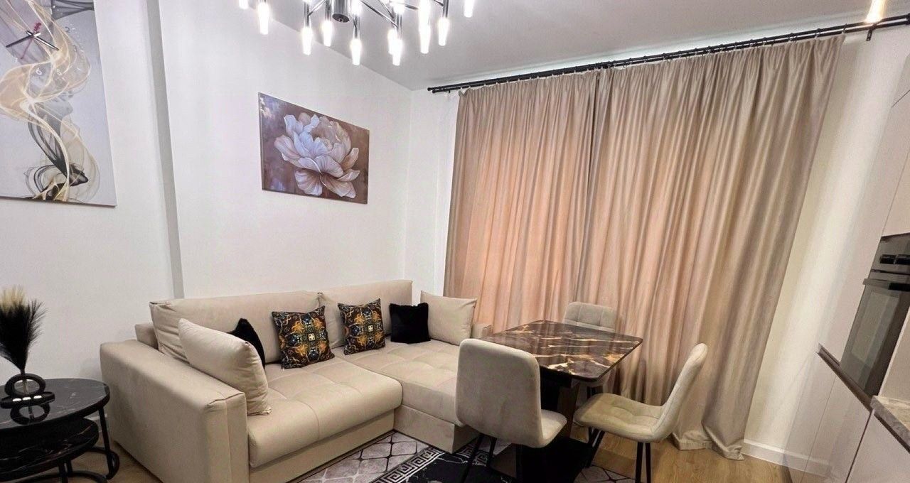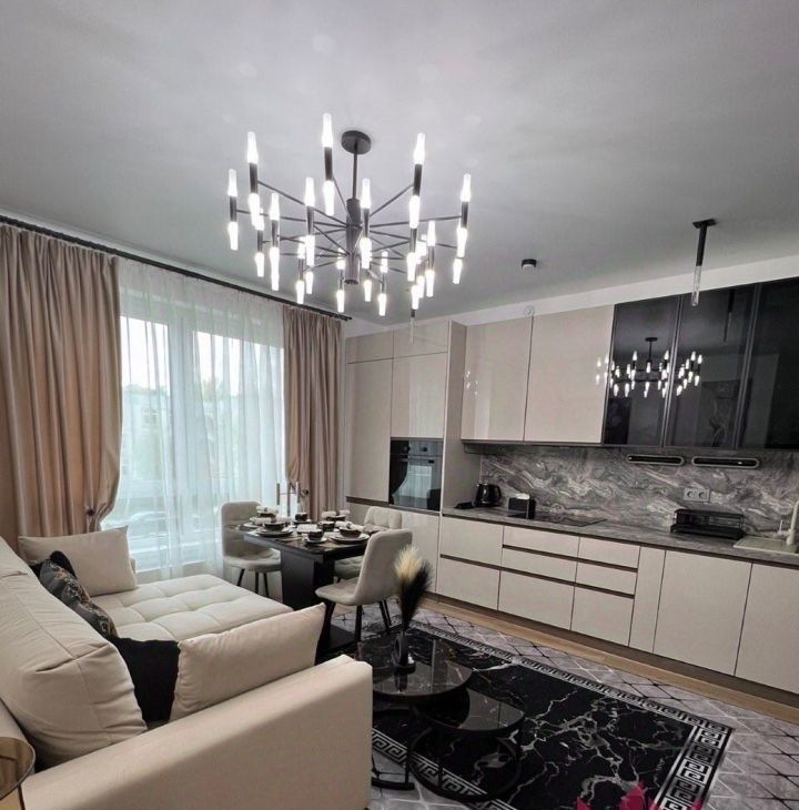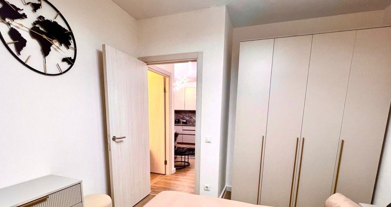 Ремонт выполнен в современном европейском стиле, а квартира полностью укомплектована для жизни: здесь есть вся необходимая мебель, включая кухонный гарнитур, техника (холодильник, посудомоечная и стиральная машины, кондиционер, телевизор), а также проведен интернет. Особенность планировки — две изолированные комнаты площадью 10.3 и 11.6 кв.м, что идеально подходит для семьи с ребенком. Большая кухня-гостиная площадью 16.6 кв.м станет центром притяжения для домашних вечеров и приема гостей.
