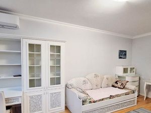 Квартира: общей площадью-36.3 кв.м., кухня-гостиная -17.3 кв.м. с кухней-нисшей- 7.2 кв.м, спальня 11.2 кв.м., санузел совмещенный, гардеробная-2.7 кв.м, холл-13 кв.м, высота потолков 2.7 м, евроремонт, мебель и бытовая техника, полы-ламинат, панорамный вид из окон.