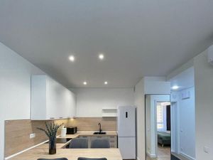 В квартире выполнен современный евроремонт. Просторная гостиная и спальня полностью меблированы, на кухне также есть вся необходимая мебель. Ванная комната оборудована ванной, что позволяет расслабиться после долгого дня. Из техники в вашем распоряжении: холодильник, посудомоечная и стиральная машины — всё, что нужно для комфортной жизни.