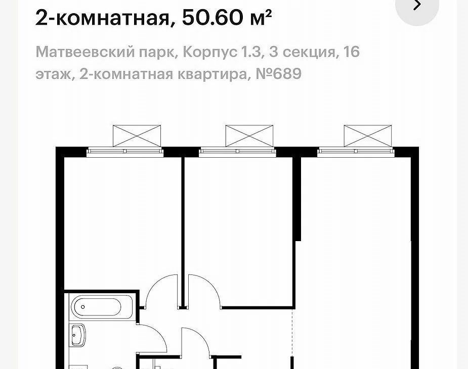 2-к кв. Москва Очаковское ш., 5к3 (51.0 м²)