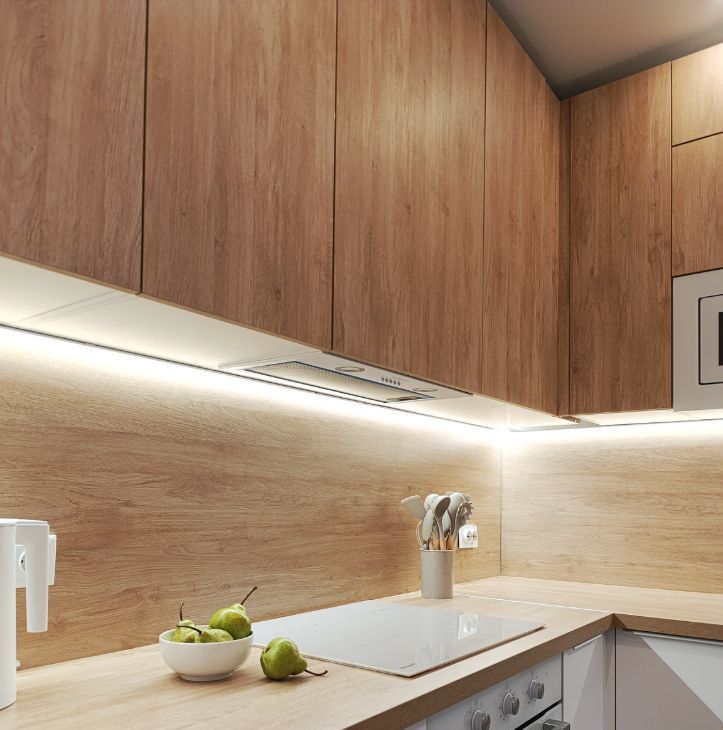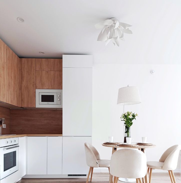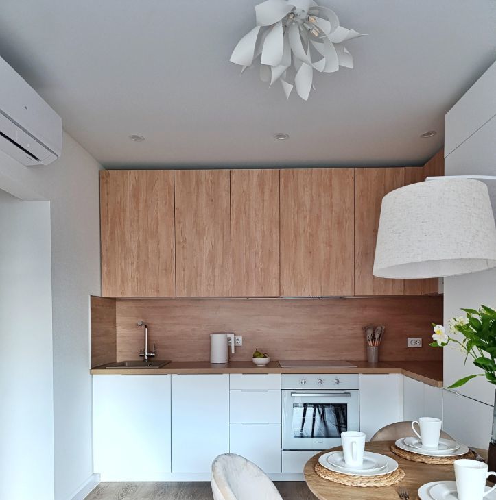 Бытовaя теxникa: xолодильник, варочная панель, духовой шкаф, вытяжка, телевизор, электрический чайник, микроволновая печь, стиральная машина, посудомоечная машина, кондиционер.