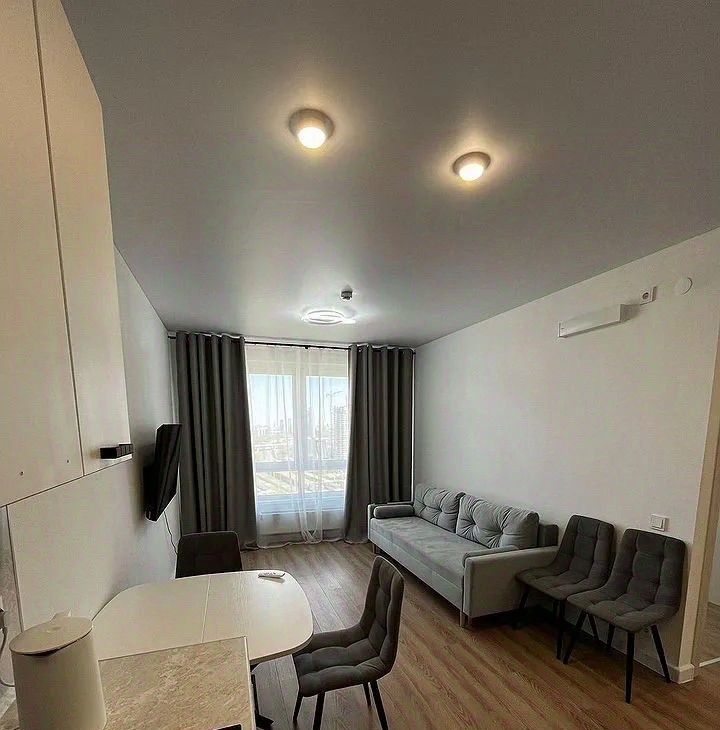 В квартире есть всё необходимое для комфортного проживания. Просторная кухня и комната полностью меблированы. Для вашего удобства предусмотрена современная техника: кондиционер, холодильник, посудомоечная и стиральная машины, а также телевизор. Санузел совмещённый, оборудован ванной. Квартира подключена к интернету и телефону, поэтому вы всегда будете оставаться на связи.