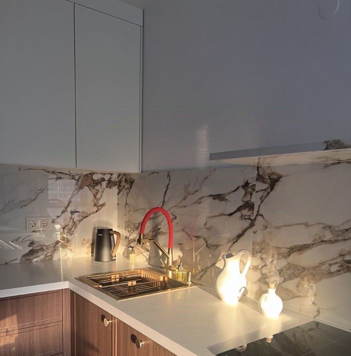 Также есть все для комфортного проживания - Холодильник, посудомоечная машина, микроволновая печь с духовкой, электрический чайник, плита индукционная, кондиционер, телевизор с Алисой (с тумбой под Тв).