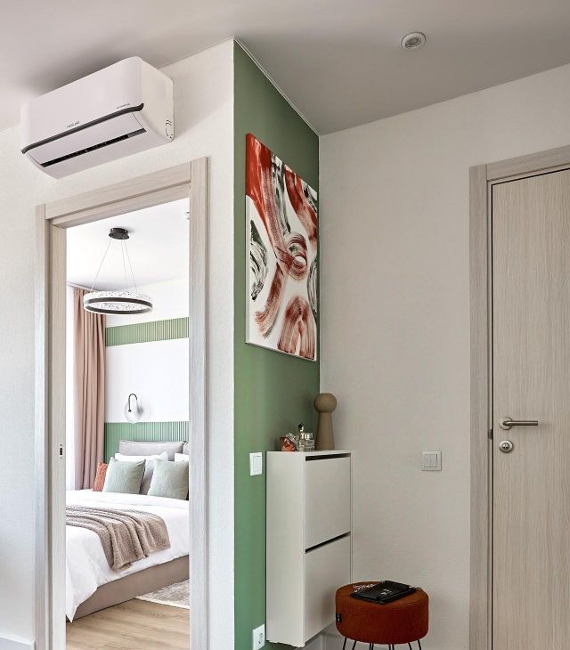 В квартире выполнен качественный евроремонт, оборудована функциональная кухонная зона с новой техникой и современной мебелью. Из техники есть всё необходимое для комфортного проживания: кондиционер, холодильник, стиральная и посудомоечная машины.