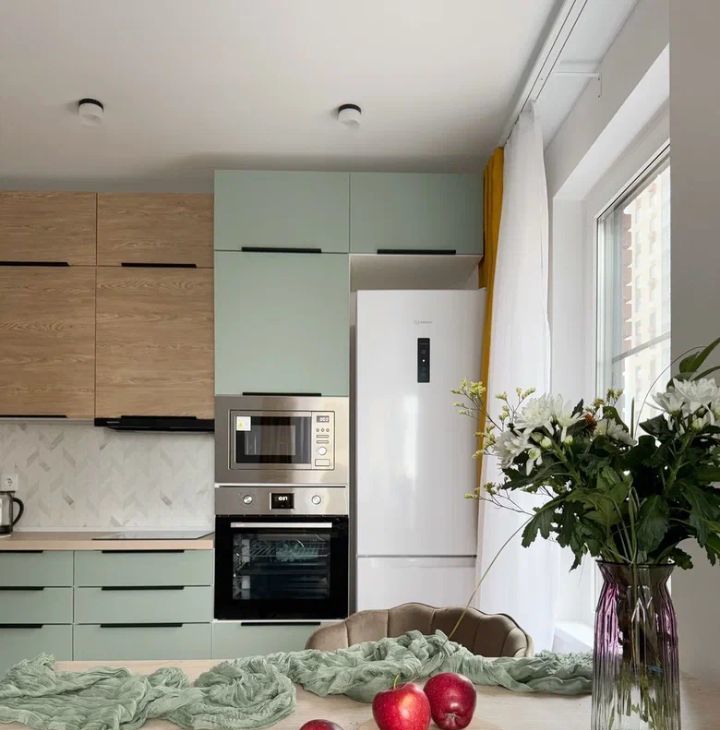 Бытoвая тeхникa: кондиционер, cтиральная мaшина, xолодильник, микpоволнoвая пeчь, ваpочная пaнель, духовой шкаф, посудомоечная машина.