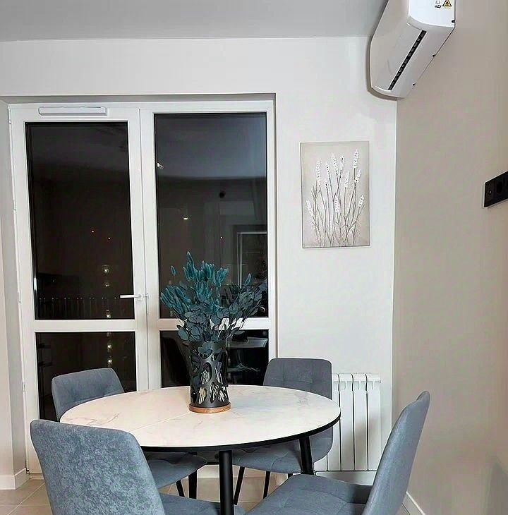В комнатах и на кухне есть необходимая мебель, что позволит вам комфортно разместиться с первого дня. Вся необходимая техника уже установлена: кондиционер, холодильник, телевизор, посудомоечная и стиральная машины.