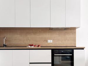 - кухня со встроенной техникой (холодильник, варочная панель, духовой шкаф, вытяжка, посудомоечная машина).