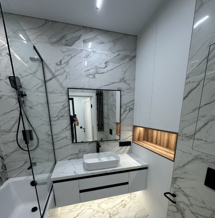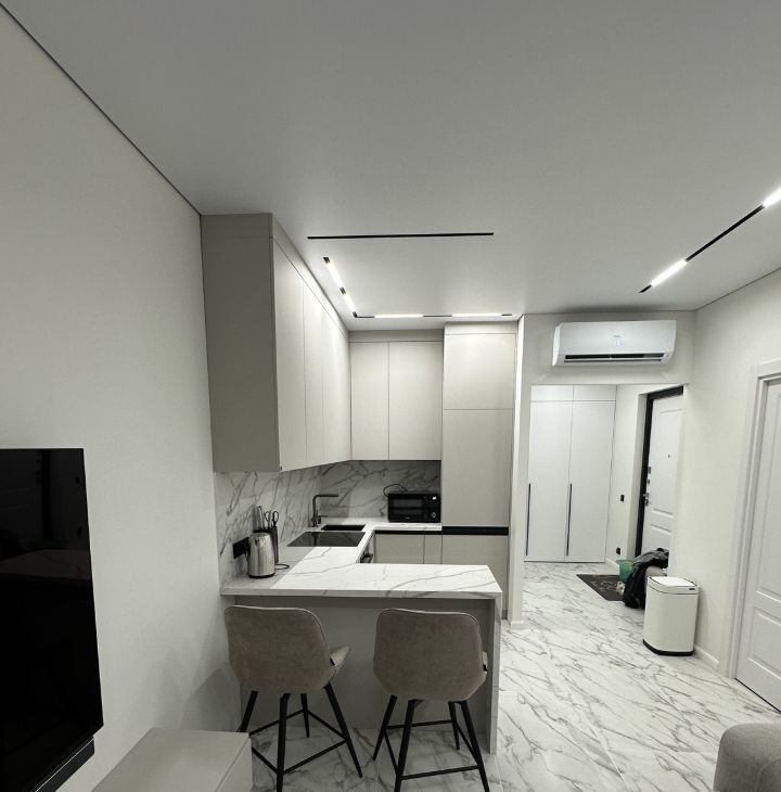 Ремонт: Выполнен по индивидуальному дизайн-проекту. Использовались только премиальные материалы, что гарантирует долговечность и безупречный внешний вид.