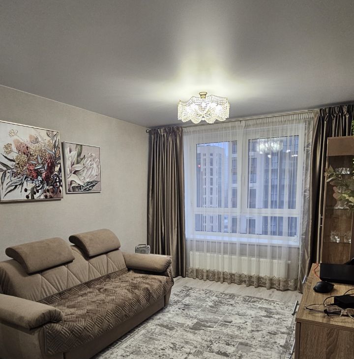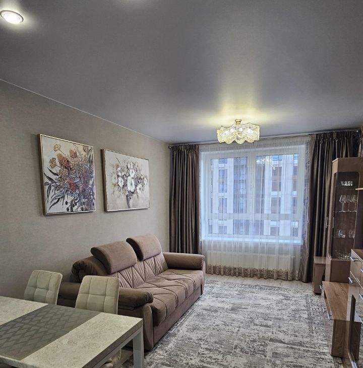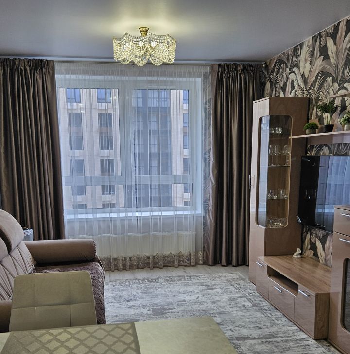 Впервые сдаётся уютная,новая с хорошим ремонтом, с новой мебелью и новой техникой 2х ком. квартира , на длительный срок, семейной паре, желательно без детей. Квартира расположена на 19 этаже 21 ти этажного монолитного дома, построенного в 2024 году. В квартире выполнен хороший ремонт, что создаёт уютную атмосферу. Комнаты изолированные, санузел совмещённый. Кухня -гостинная просторная — 22,1 м², оснащена необходимой мебелью и техникой.