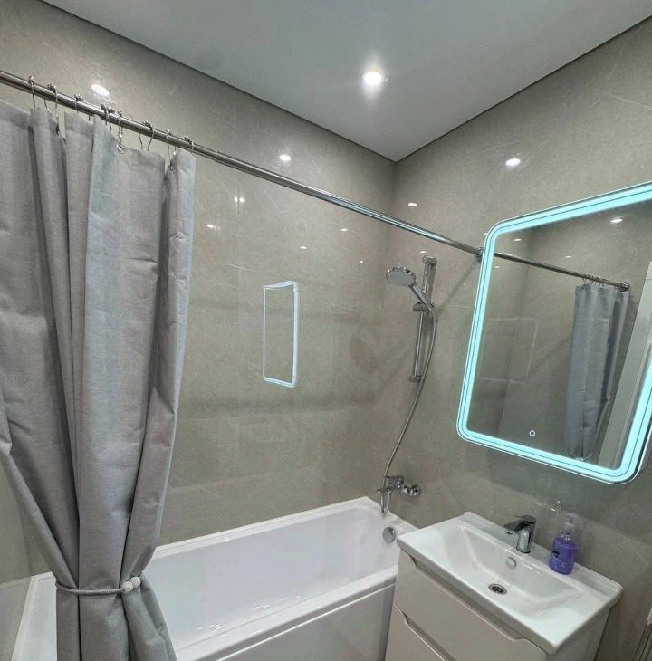 В квартире имеется всё необходимое: мебель и техника (WiFi, телевизор, стиральная машина, холодильник, микроволновая печь, кондиционер, посудомойка, чайник).