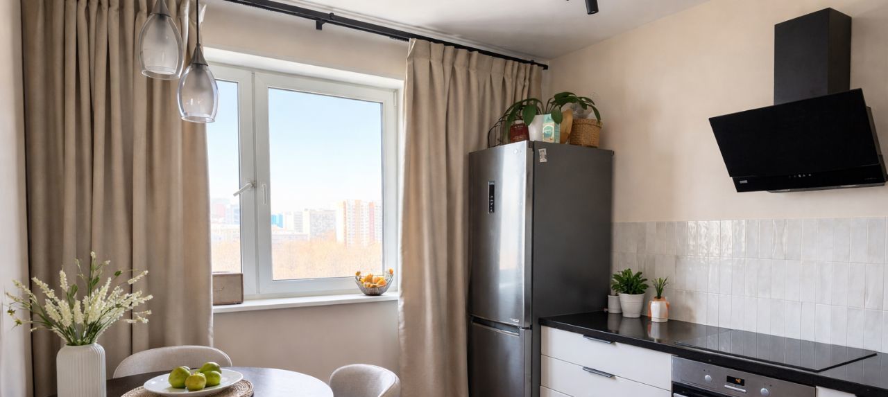 Из всех окон и балкона шикарный вид на зелень, без домов перед носом. Квартира очень светлая и всегда видно закат. Новая дизайнерская кухня в квартире была сделана всего месяц назад.