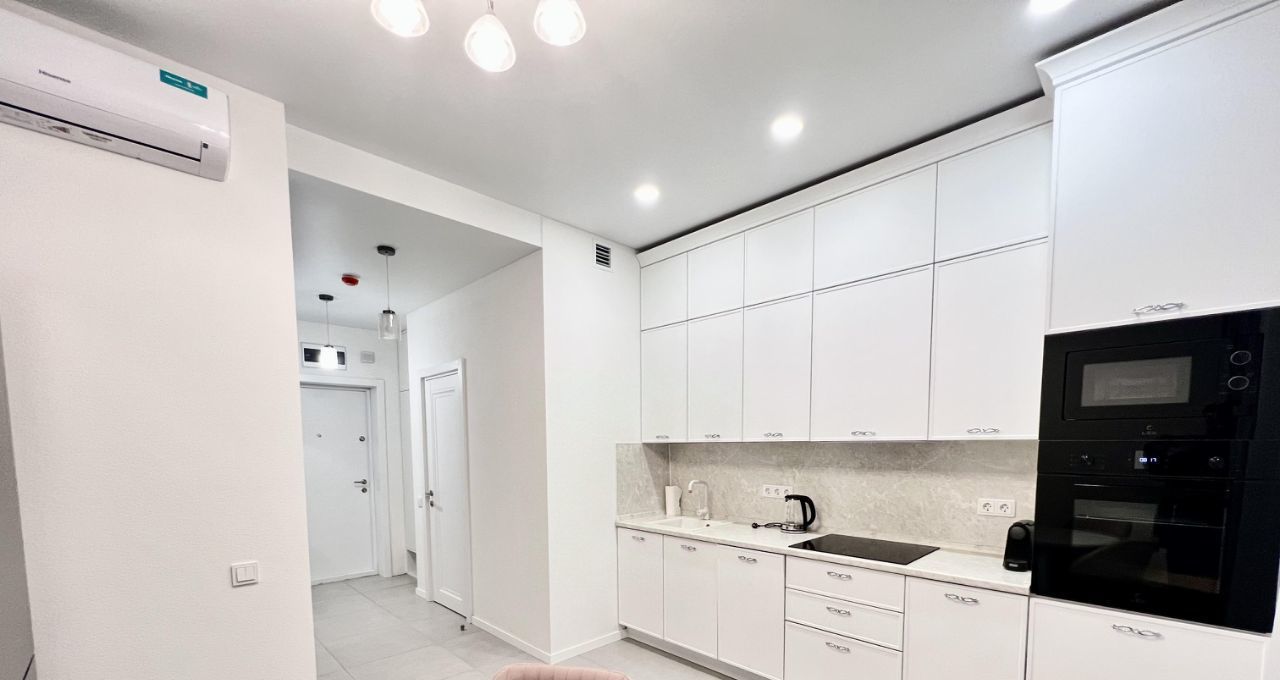 В квартире сделан качественный евроремонт, что позволяет вам сразу насладиться комфортом и уютом. Удобная планировка включает два совмещенных санузла, один из которых оборудован ванной. Светлые комнаты с окнами, выходящими во двор, создают спокойную атмосферу. На кухне и в комнатах есть вся необходимая мебель. Из техники — кондиционеры, холодильник Bosch, посудомоечная машина, варочна панель, духовка, микроволновая печь, кофе машина, телевизоры и стиральная машина. Высота потолков — 2,83 метра, что добавляет ощущение простора. Приятным бонусом является лоджия, где можно отдыхать на свежем воздухе.