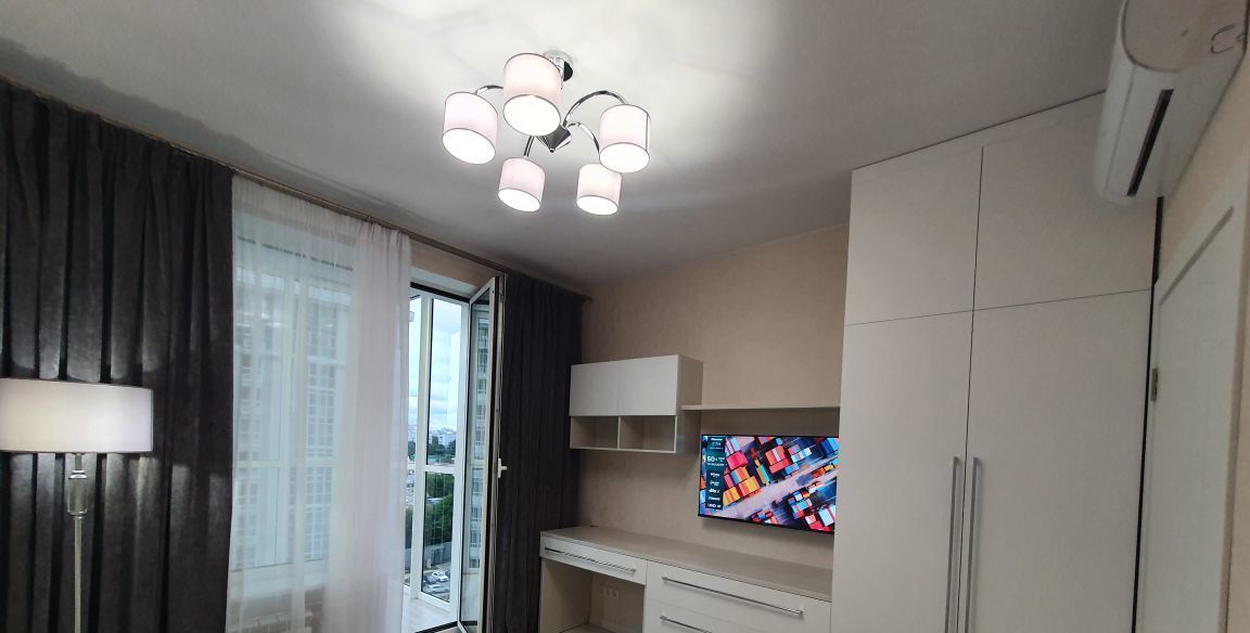Евродвухкомнатная красивая квартира: кухня-гостиная, изолированная спальня с выходом на балкон. Современная мебель и техника (включая посудомоечную машину и кондиционеры). Сдаётся на длительный период. Жилой комплекс c огороженной территорией, магазинами и кафе, в трёх минутах пешком от метро. Пожалуйста, Звоните, т.к. на сообщения нет возможности отвечать.