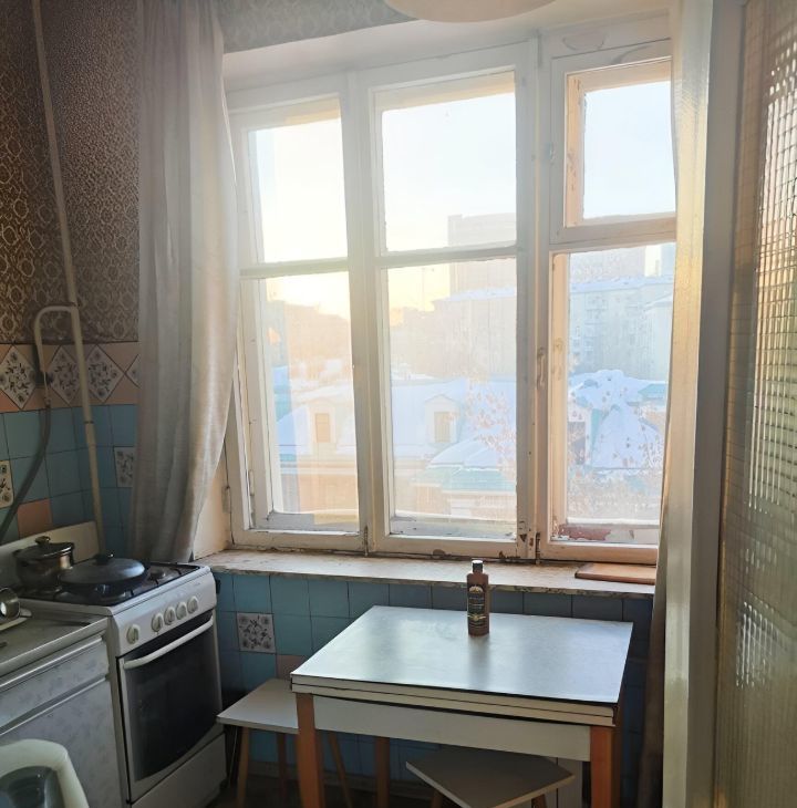 Окна: выходят на солнечную сторону. Обратите внимание: сейчас окна деревянные, летом в квартире может быть жарко. Это легко решается установкой современных стеклопакетов.