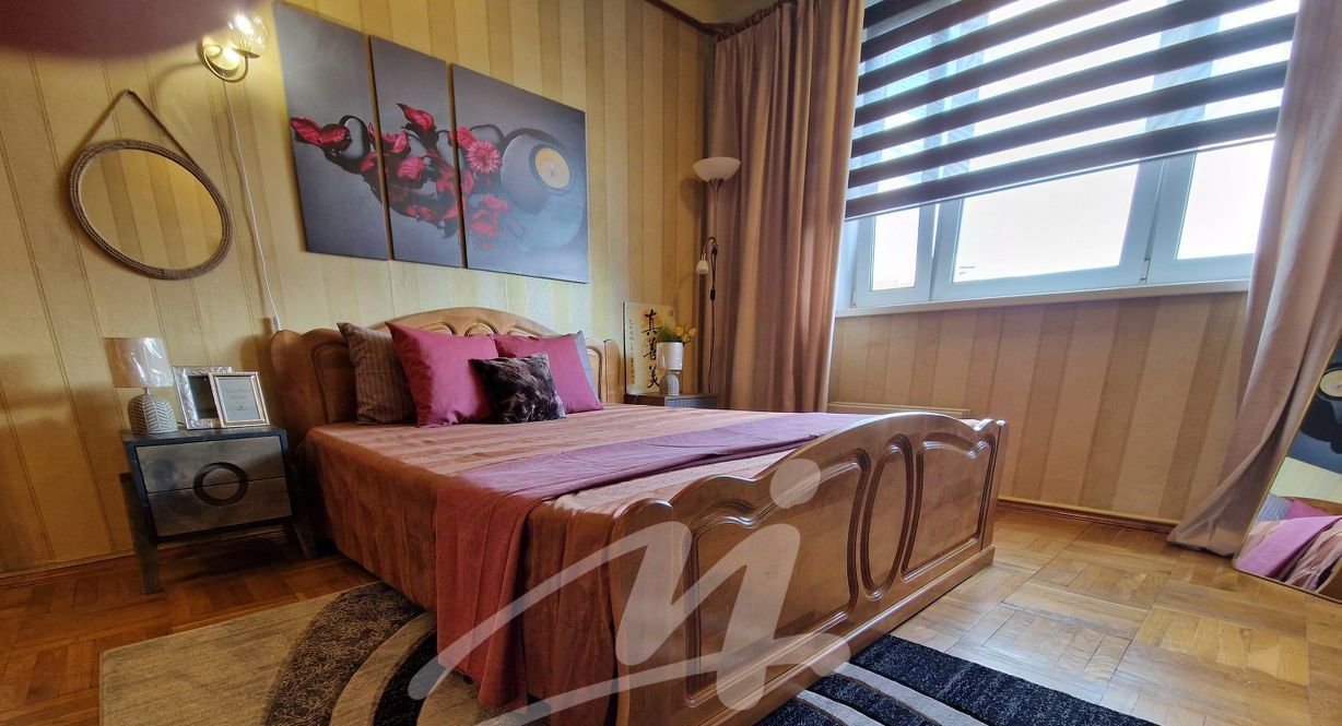 Вся отделка квартиры выполнена из экологичных материалов и массива натурального дерева, включая кухонный гарнитур (Италия), межкомнатные двери, двуспальную кровать (Испания) с ортопедическими ламелями. Штучный дубовый паркет. Новые экологичные английские обои. Фирменные турецкие ковры-хамелеоны. Подвесные зеркальные потолки по нидерландскому проекту.