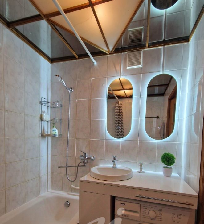 Квартира после дизайнерского ремонта. Кухня со встроенной бытовой техникой, стеклокерамическая варочная панель с духовкой. Качественная бытовая техника: стиральная машина, новая полноразмерная посудомоечная машина Bosh, микроволновка, кофемашина, робот-пылесос, японский кондиционер. Ванна и туалет выложены кафелем. Итальянская ванна анатомической формы с ручками. Финская мягкая мебель из нат. кожи. Новая японская сантехника.