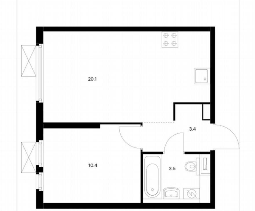 2-к кв. Москва Открытое ш., 18Ак2 (40.0 м²)