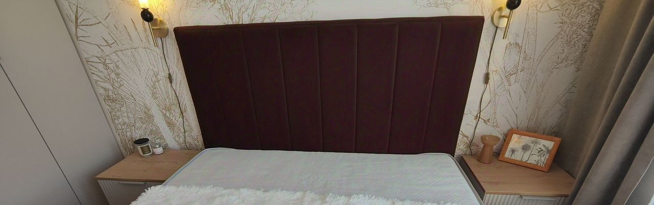 • Двуспальная кровать 160200 с подъёмным механизмом • Ортопедический матрас • Большой шкаф 260 см до потолка • Комод и прикроватные тумбы • Плотные шторы
