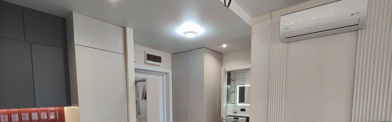 Зона отдыха: • Большой диван-кровать с ящиком для хранения • Смарт ТВ • Письменная зона • Кондиционер с Wi-Fi управление (очень тихий режим) • Стильные светильники и текстиль