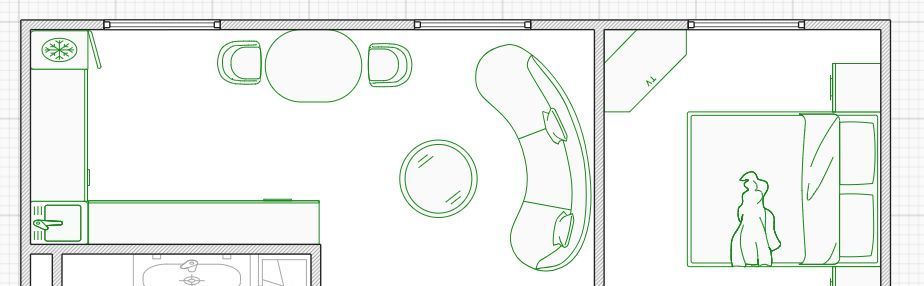 - Планировка: Просторная гостиная (18 м²), объединенная с кухонной зоной (11 м²) для приема гостей, и тихая изолированная спальня (18 м²). Просторный совмещенный санузел (8 м²)