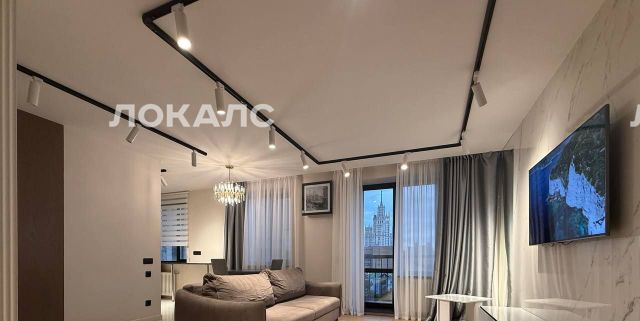 Сдается квартира с дизайнерским ремонтом. Большая кухня-гостинная - 35 кв.м. и изолированная спальня 18 кв.м. Вся мебель и бытовая техника новая, включая посудомоечную машину, два телевизора и кондиционер. Дом находится в тихом центре. Панорамный вид на Москву.