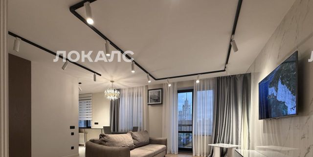 Большая кухня-гостинная - 35 кв.м. и изолированная спальня 18 кв.м. Вся мебель и бытовая техника новая, включая посудомоечную машину, два телевизора и кондиционер. Дом находится в тихом центре. Панорамный вид на Москву.