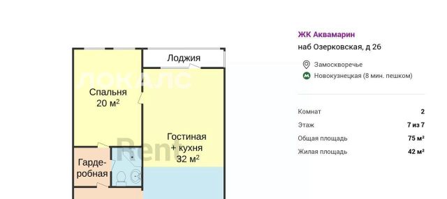 Предлагается 2-комнатная квартира общей площадью 75 м² в ЖК "Аквамарин" недалеко от станции метро "Новокузнецкая". Для комфортного проживания в наличии имеется вся необходимая мебель, а также нагреватель воды и система теплого пола. Кухонный гарнитур оснащен посудомоечной машиной, духовой печью. Для удобства организованы гардеробная комната и прачечная. Из дополнительных преимуществ - наличие лоджии. Окна обращены во двор, обеспечивая тишину.