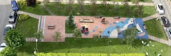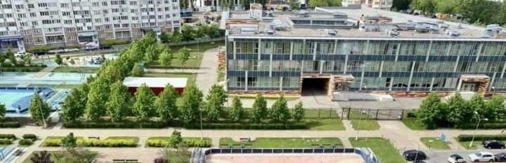 Во дворе обустроена детская площадка и открытая парковка, школа и детский сад. Вид из окон открывается на ухоженный зеленый двор.