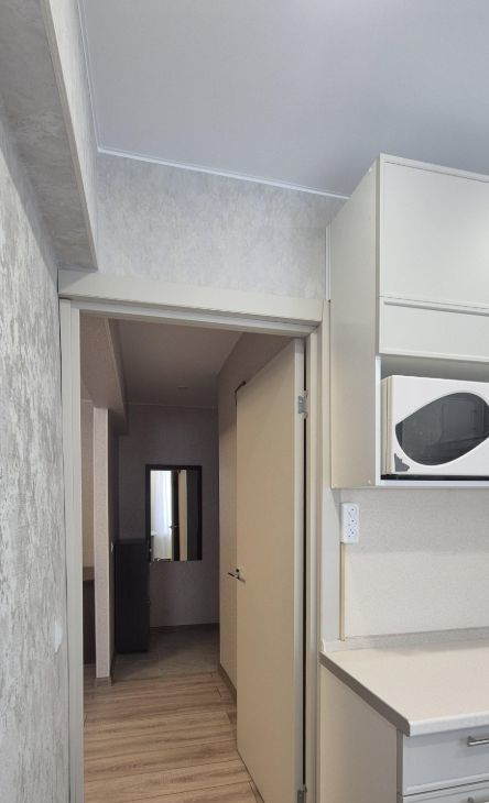 Комнаты смежные (просторная гостиная и спальня с гардеробной). Обустроенная кухня.