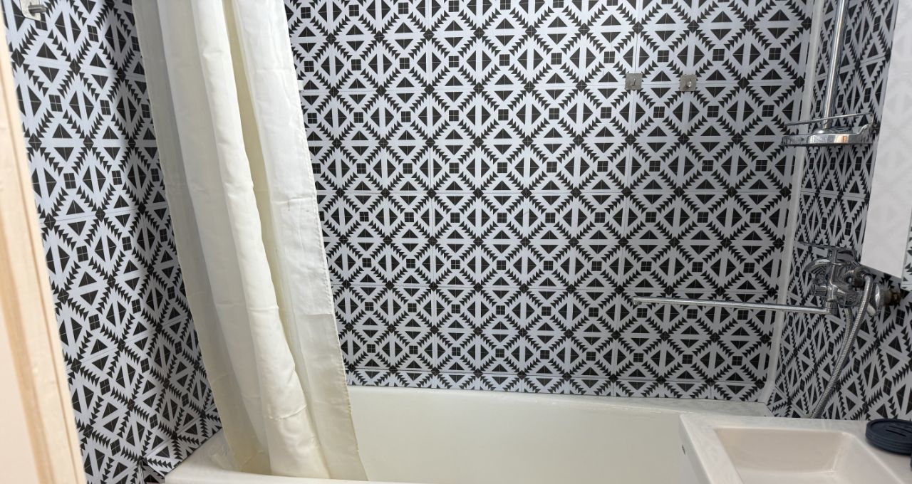 Кухня оснащена необходимой бытовой техникой: холодильник, плита, микроволновая печь и стиральная машина. Ванная комната и туалет раздельные, оформлены в современном стиле.