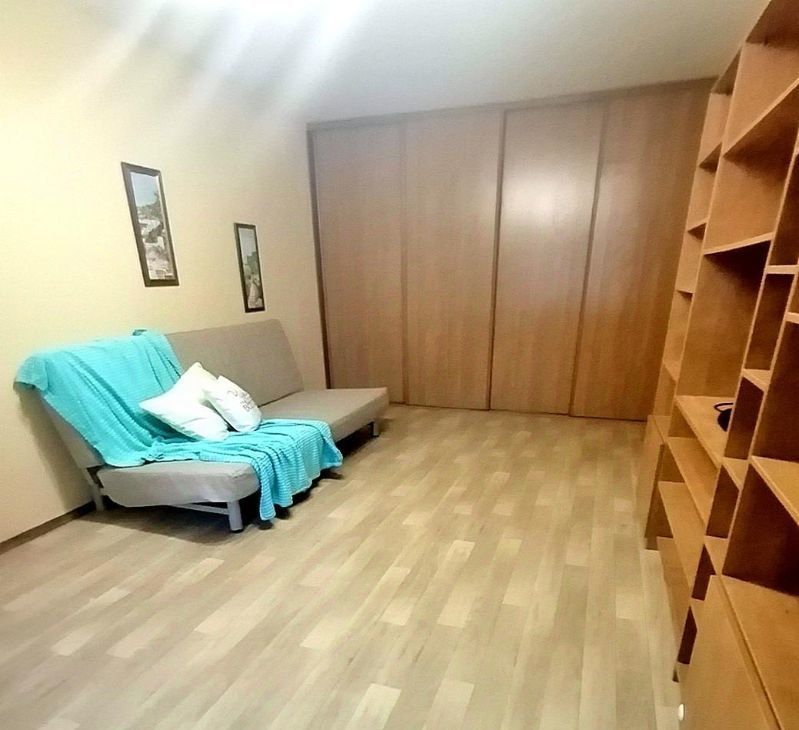 Квартира меблирована: два вместительных шкафа-купе и шкаф-пенал, комод, два раскладных дивана, два рабочих стола.