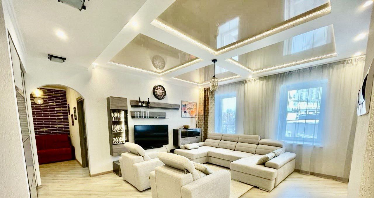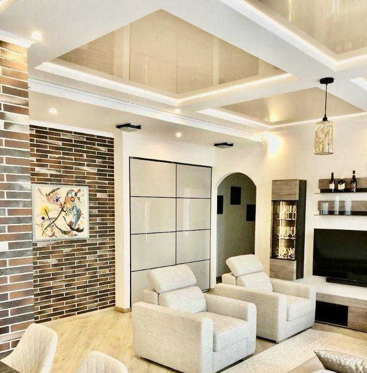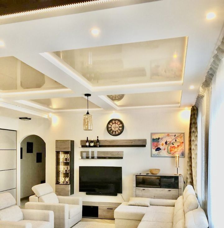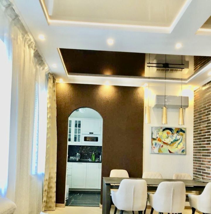 В квартире : спальня с двуспальной кроватью , гостинная с зоной отдыха и обеденной зоной, соединенная с кухней аркой. Мебель и техника в отличном состоянии, приятным бонусом - парковочное место за шлагбаумом.