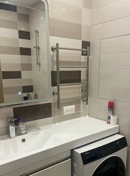 Кухня просторная, площадью 21 м², оснащена современной техникой и обеденной зоной. Ванная комната совмещённая, оформлена стильными плитками и оборудована всем необходимым.