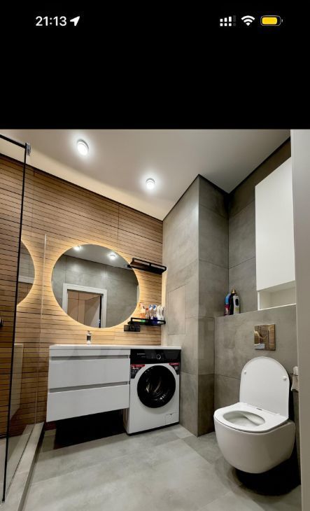 Санузел совмещенный, оборудован душевой кабиной и стиральной машиной. В прихожей