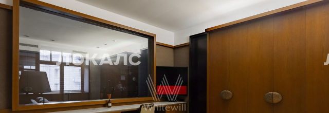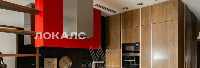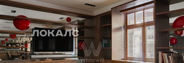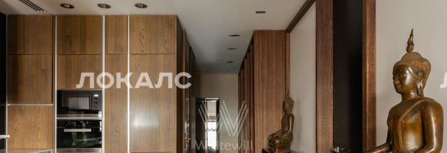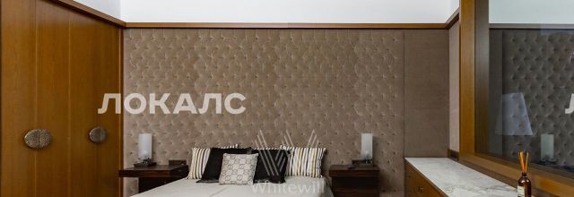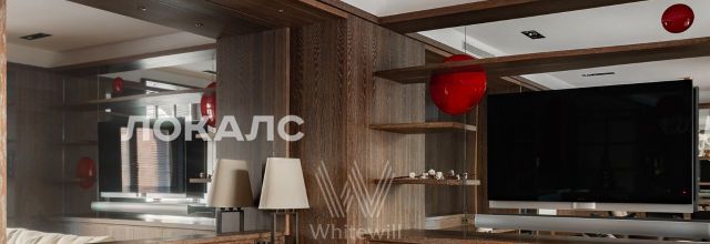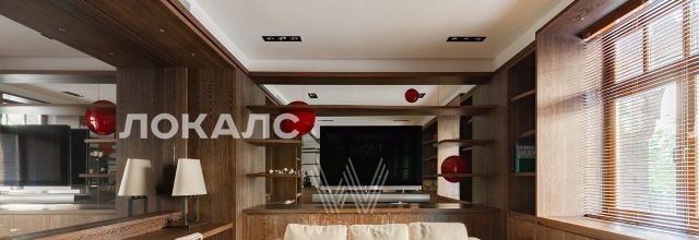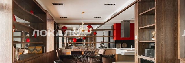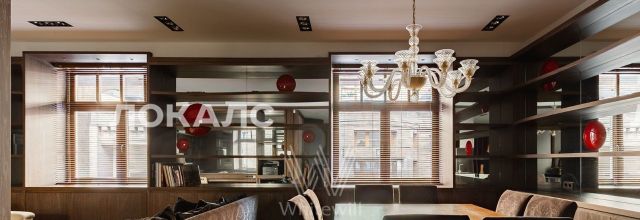 Квартира с одной спальней общей площадью 100 м² в комплексе делюкс-класса "Парк Палас" на первом этаже. Выполнена дизайнерская отделка с использованием натурального дерева. Интерьеры укомплектованы итальянской мебелью Promemoria, Simonetto, установлен биокамин. Окна ориентированы в тихий двор.