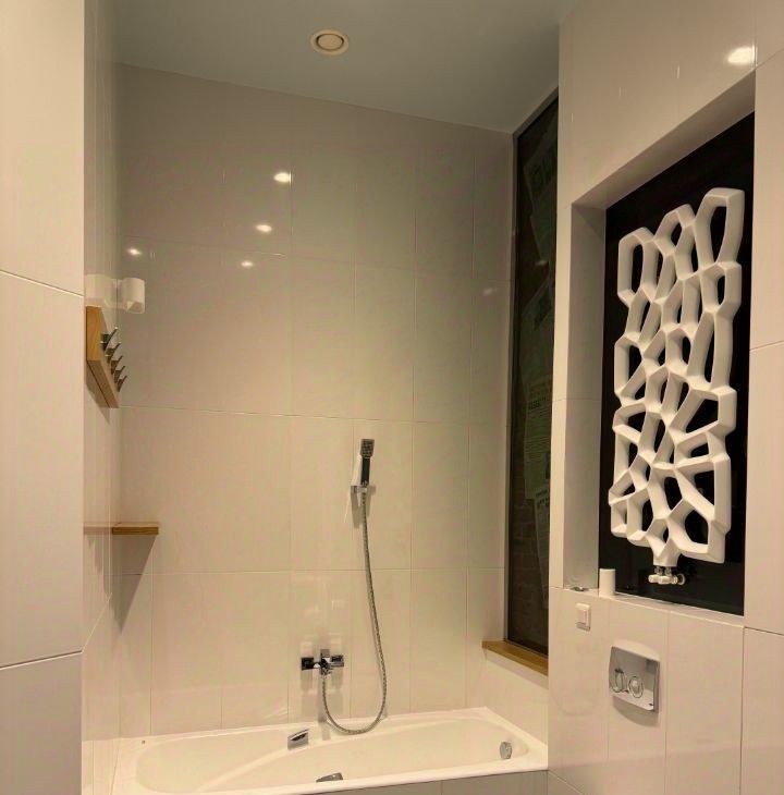 ванная и душевая кабина, зеркало с подсветкой, полотенцесушитель, полы с подогревом