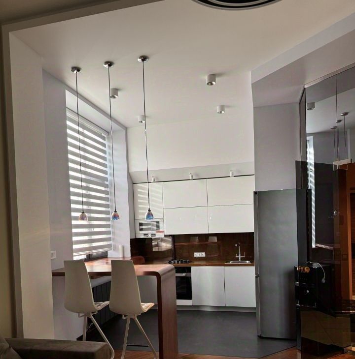 свежий косметический ремонт, очень высокие потолки