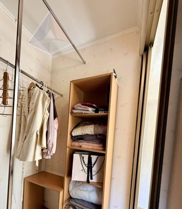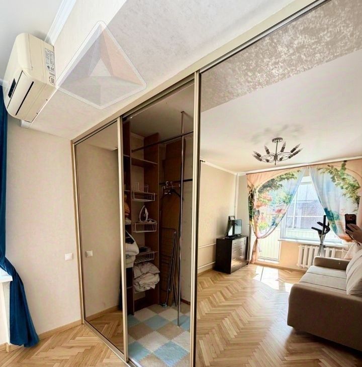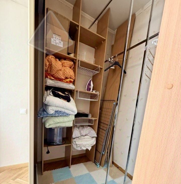 • Большая гардеробная, скрытая за зеркальными дверями — порядок, который освобождает мысли и пространство для главного